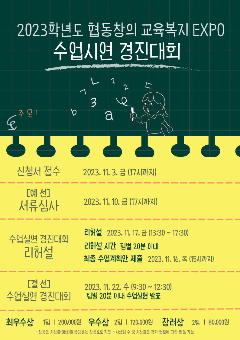 | 제목 | 2023학년도 협동창의 교육복지 EXPO 수업시연 경진대회 | ||||