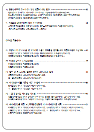 지난 12월 3~4일 한국과학기술회관에서 온라인으로 추계학술발표대회가 열렸어요. 한국생태건축학회 추계학술발표대회는 생태건축학(건축계획, 단지계획, 환경설계), 생태주거환경(실내건축), 생태도시조경(도시, 조경, 단지), 생태환경(열환경, 빛환경, 공기환경, 음환경, 건축에너지, 스마트그린빌딩기술), 생태건축공학(재료, 시공, 구조), 생태문화공학(문화, 사회) 등의 분야에서 구두발표와 학부생학술대회로 진행되었습니다. 우리 학과에서는 오진욱학생 이외에 15명이 참가하였고, 조현진(대전시 서구 관저공공도서관의 친환경 계획, 4학년), 박서원, 임보영, 최원준(에너지절감을 위한 노인특화종합병원의 패시브디자인적용 계획, 3학년, 4학년) 등 2팀이 우수논문상을 수상했습니다. 축하하면서 지도해주신 최율교수님, 이현진교수님께도 감사의 말씀을 올립니다. 학술발표 프로그램 중 일부 목차를 올립니다.