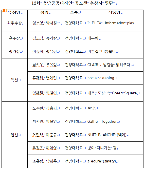 | 제목 | 제12회 충남공공디자인공모전 2년 연속 최우수상 수상 | ||||