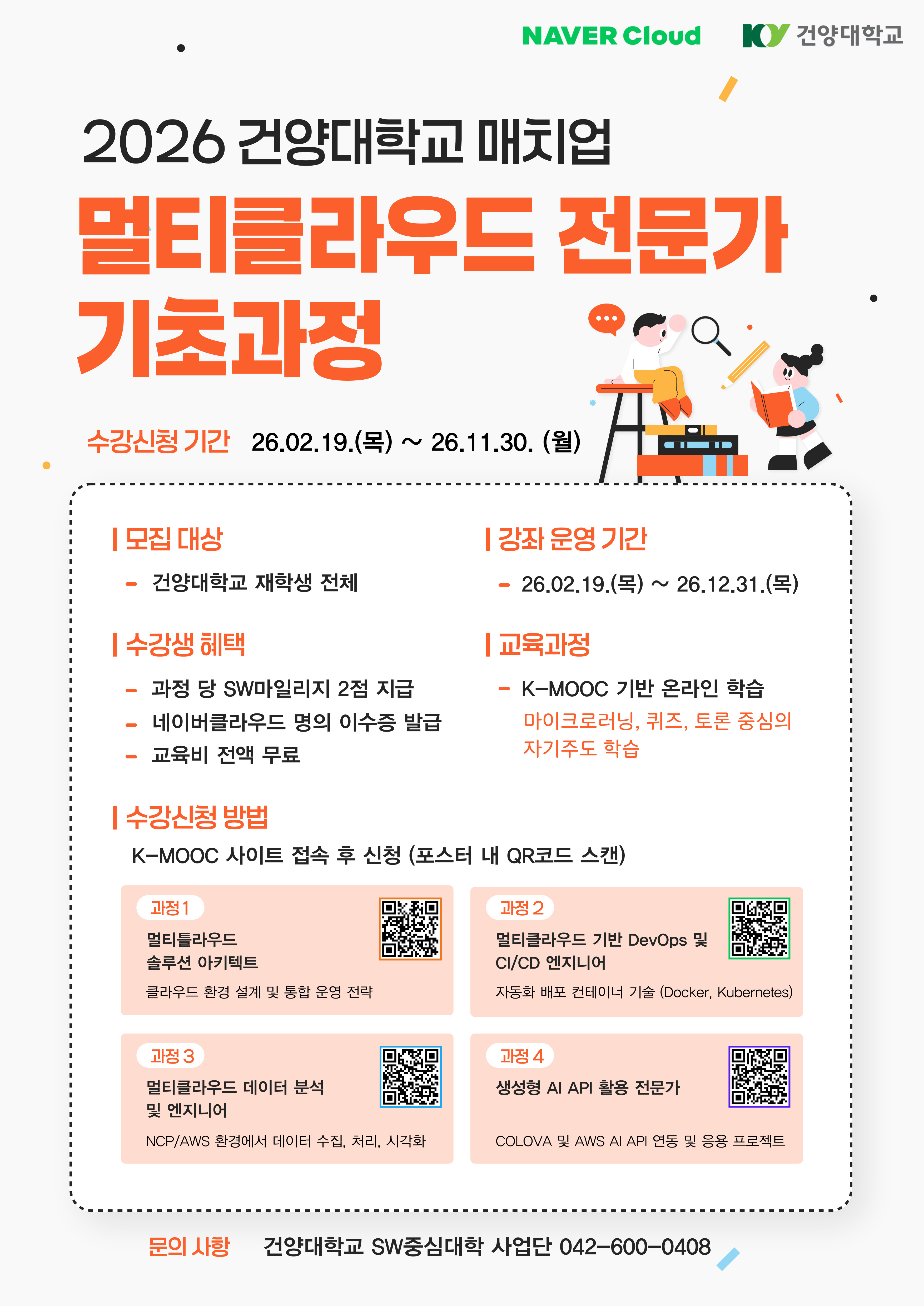제목 2026 건양대학교 매치업 멀티클라우드 전문가 기초 과정 교육생 모집
